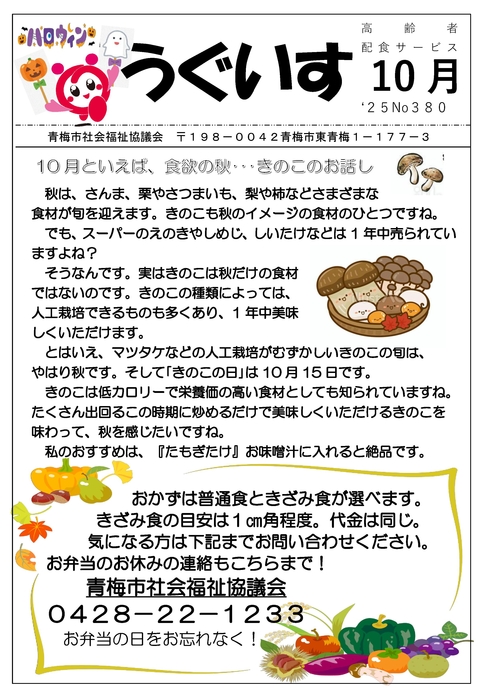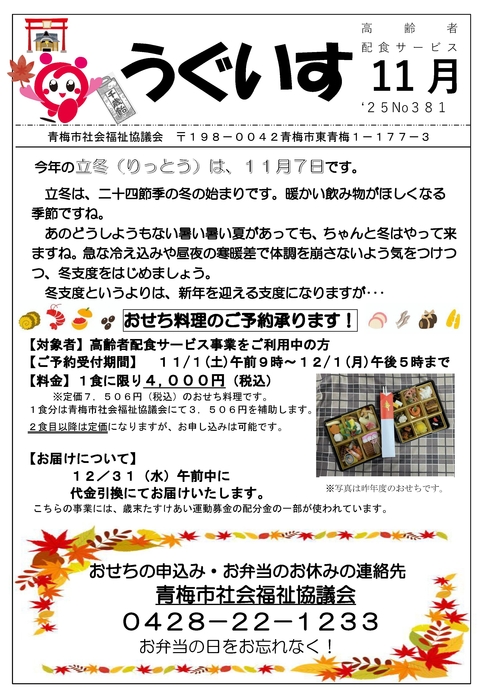 うぐいす ~青梅市高齢者配食サービス メニュー~